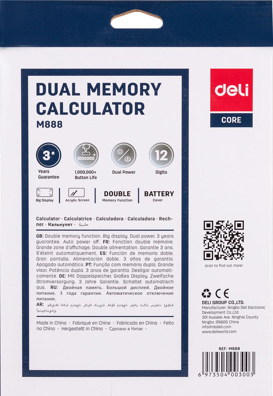 Калькулятор настольный DELI EM888 (черный)
