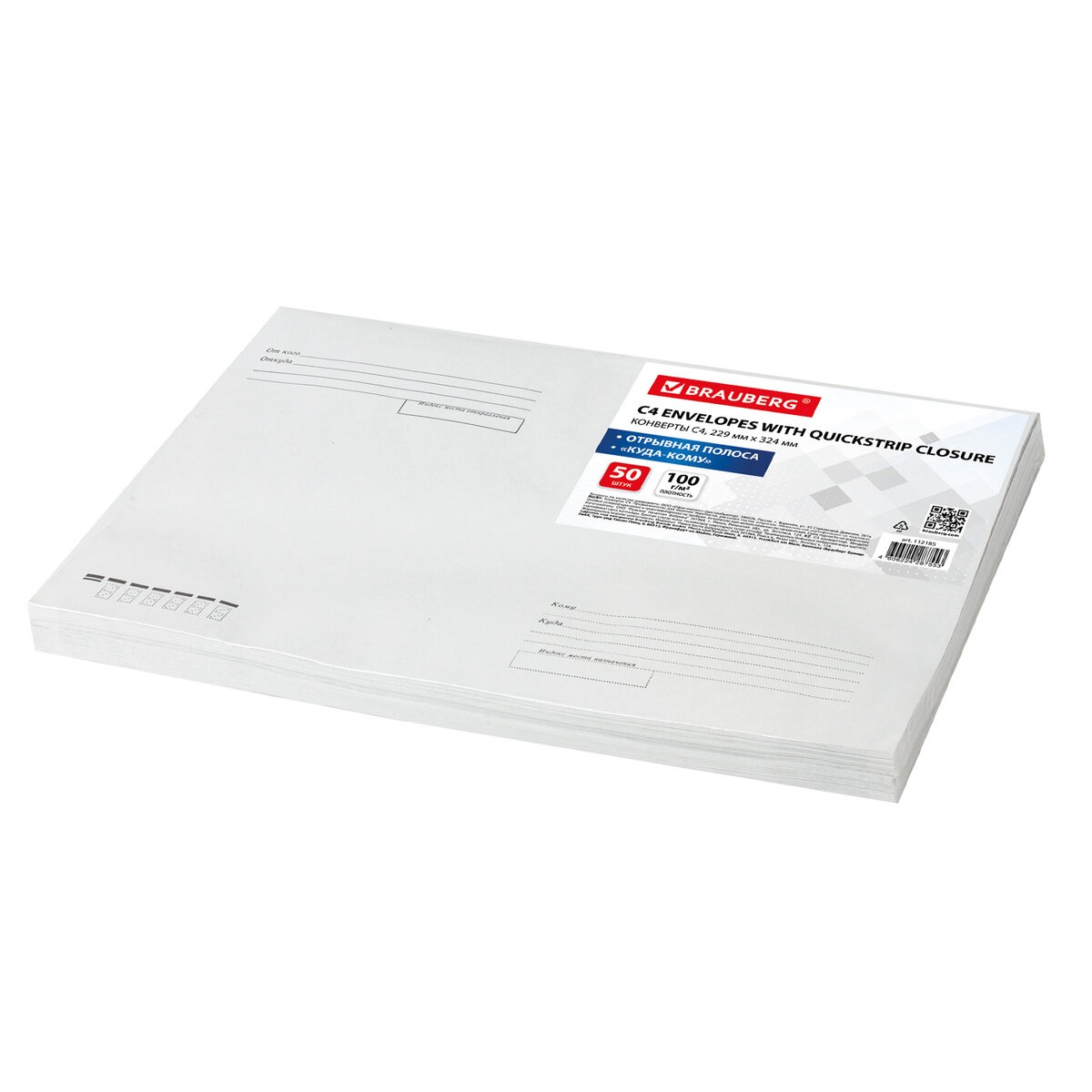 Почтовый конверт BRAUBERG предназначен для рассылки документов, журналов и другой корреспонденции.В конверт формата C4 можно вложить документ формата А4. На передней стороне конверта имеются адресные указатели: "Куда", "Кому", "От кого", "Откуда". Плотность бумаги 100 г/м2 позволяет размещать тяжелую корреспонденцию и скрывать содержимое от посторонних глаз. Отрывная полоса типа STRIP обеспечивает надежное запечатывание конверта и сохранность личного письма или важного документа.