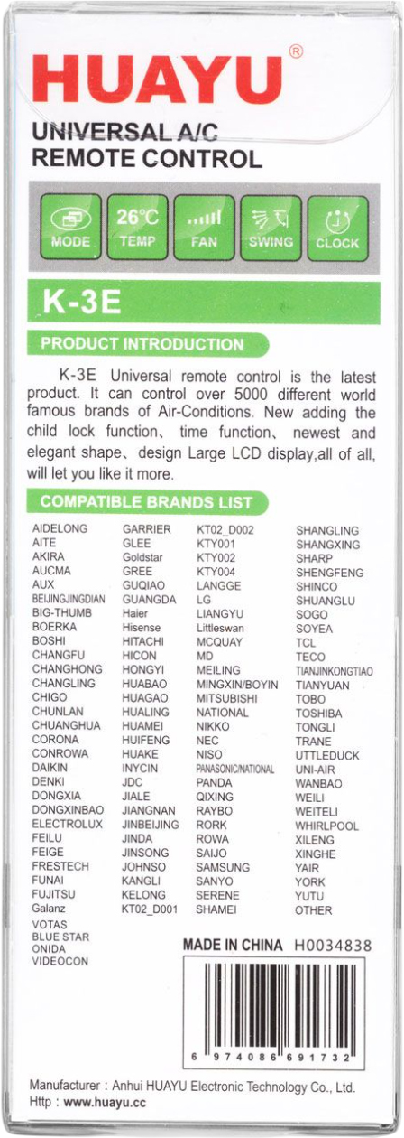 Универсальный пульт HUAYU K-3E белый (HAR077)