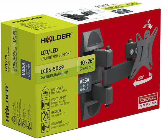 Кронштейн Holder LCDS-5039 позволяет выбрать оптимальное положение телевизора, наклоняя и поворачивая его, а также изменяя расстояние до стены. Стильные декоративные накладки делают его почти незаметным в любом интерьере, а быстросъемная пластина значительно облегчает монтаж мультимедийного устройства. Держатель изготовлен из прочного сплава и может длительное время выдерживать большие нагрузки.