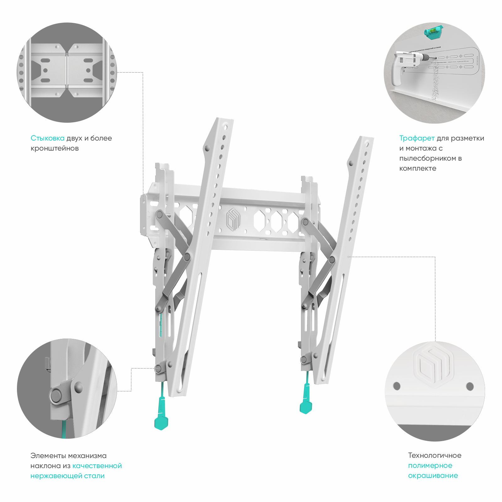- Тип кронштейна: настенный наклонный