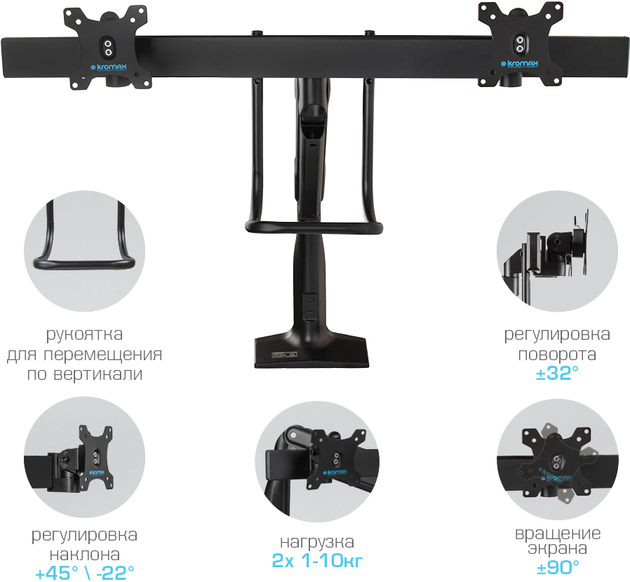 Кронштейн для двух мониторов KROMAX OFFICE-20 черный (90634)